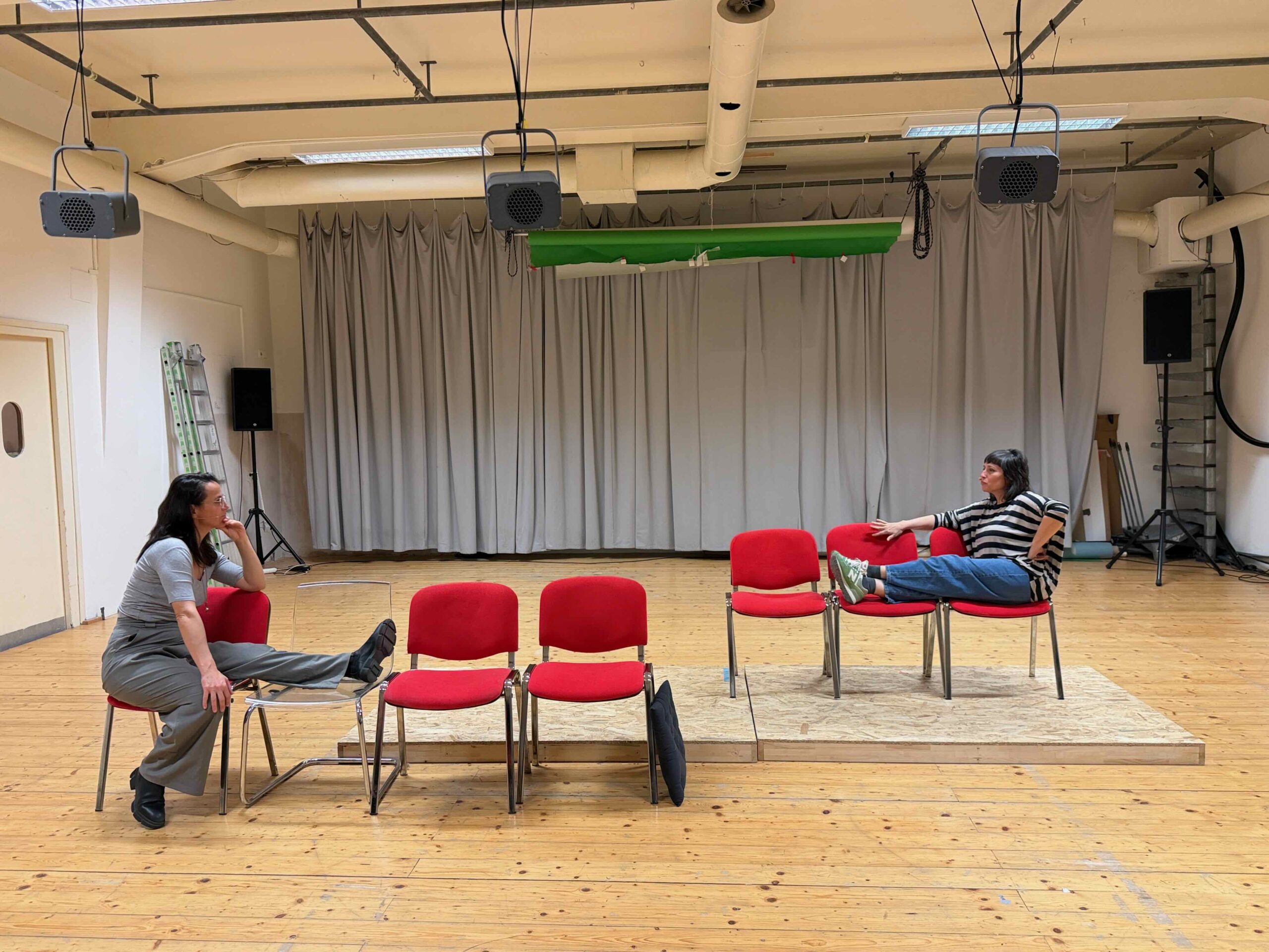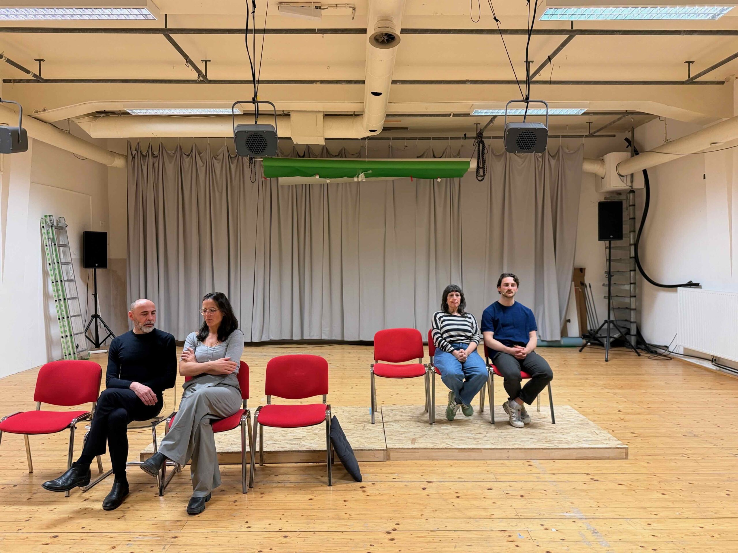 - L.O.V.E. proposes that intimacy is not primarily a private emotion but a cultural technology. We learn how to desire, how to confess, how to withdraw, and how to break up through inherited scripts: films, pop songs, therapy manuals, dating apps, social media, and the language of self-optimization of the How To Love books. These scripts do not merely represent love; they actively produce it.To speak of love today is therefore always to quote. We repeat phrases that are older than us. We perform gestures that have been rehearsed millions of times. Even our most sincere confessions arrive preformatted.The formal constraint of this piece makes that condition visible. By limiting speech to a single letter, the performance does not impoverish expression; it reveals how fragile and mediated expression already is. What appears artificial on stage mirrors the everyday artificiality of intimacy in a world of endless profiles, algorithmic matches, and curated selves.In this sense, the constraint becomes a model of contemporary subjectivity. Just as the characters struggle to articulate themselves within their alphabet, lovers struggle to recognize themselves within the languages that are available to them. Desire does not disappear, but it must squeeze itself through narrow channels of recognizability.L.O.V.E. does not argue that love is false. It suggests something more unsettling: that love persists, but only by adapting to the forms that late capitalism and digital culture make speakable. What we experience as romance is increasingly shaped by metrics, images, genres, and expectations that promise connection while quietly regulating it.The tragedy here is not that love fails. It is that love is asked to function inside systems that were never designed for it.What remains, then, is not a grand declaration but a fragile act of resistance: two people, still speaking, still trying to mean something to one another, even when the language they inherit keeps getting in the way.